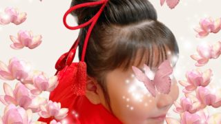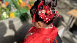 先日の七五三、髪結がおわり、着付け、帯締めが終わり、最後に髪飾りを飾ります。